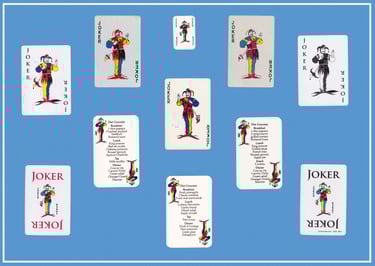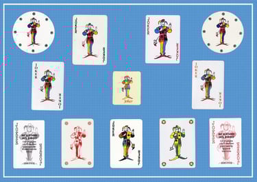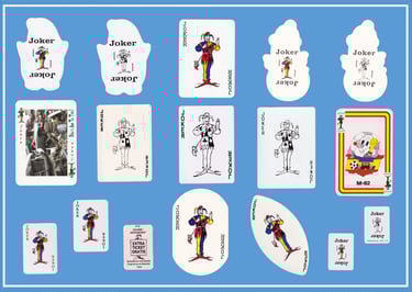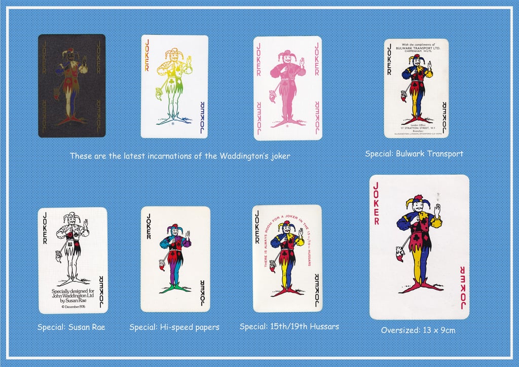 Using the standard Waddington’s joker, this series examines the variety of differences available. Custom, game jokers, foreign imports and the real thing. . .call them what you will, they are all relative (image wise) to this joker’s family.