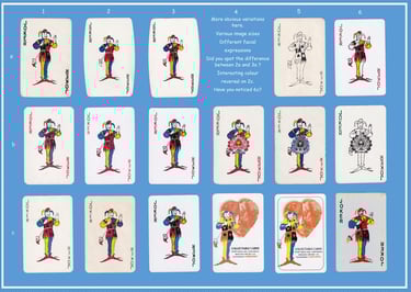 Look the same? Look again. Whilst some variations are obvious others may go undetected. Using the standard Waddington’s joker, this series examines the variety of differences available.